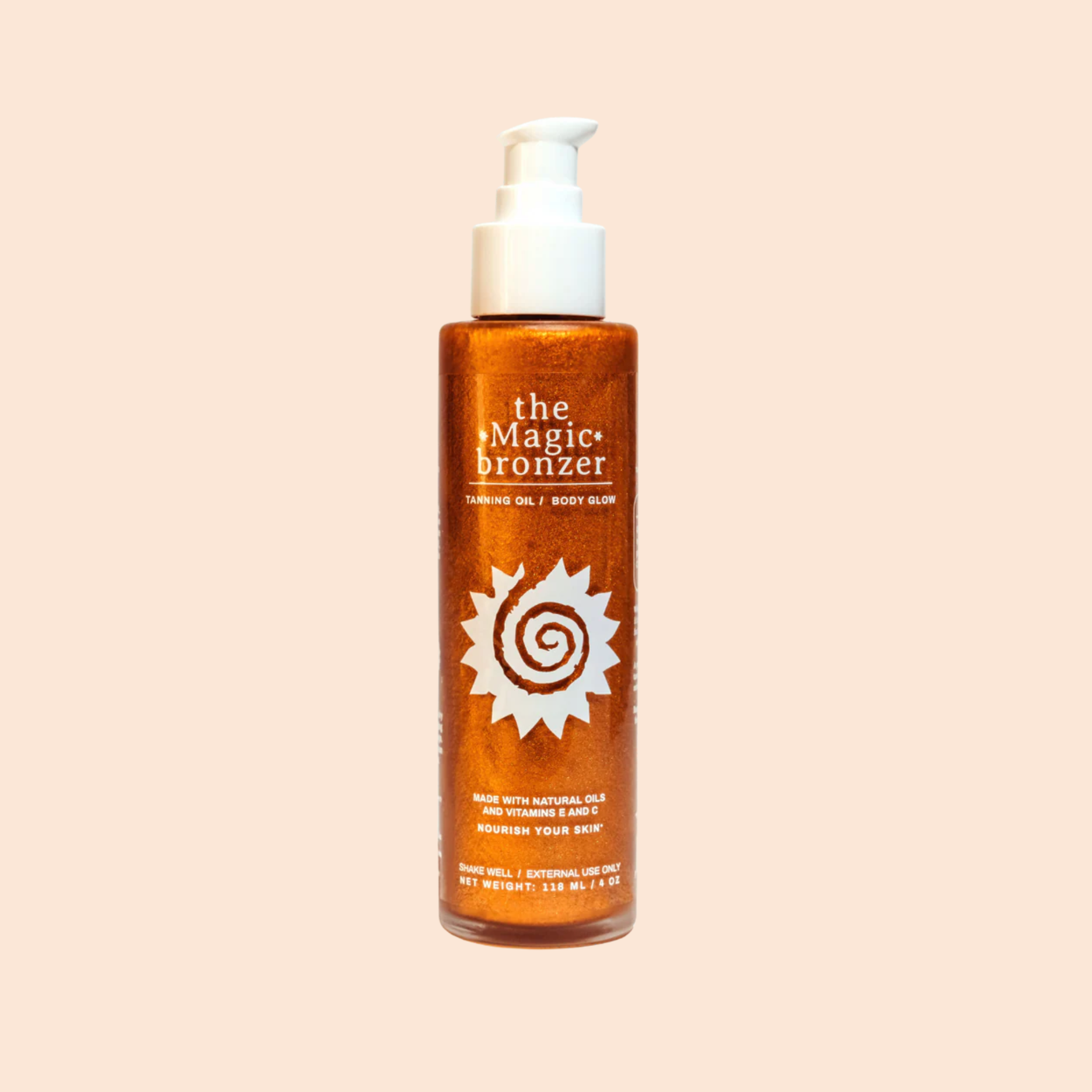 - Magic Bronzer (Limited Edition) — A shimmering botanical oil that enhances your natural glow with hydration, leaving skin silky, sun-kissed, and luminous.